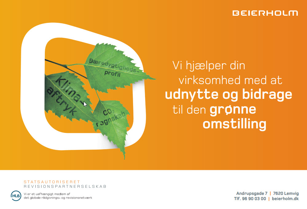 Bæredygtighed er et højaktuelt emne, der påvirker rigtig mange virksomheder. Hos Beierholm er vi klar til at rådgive vores kunder, så indsatserne omkring bæredygtighed vendes til en fordel frem for en omkostning. Med en række initiativer gør vi vores kunder i stand til at implementere og drive en bæredygtig virksomhed samtidig med, at de bibeholder eller øger virksomhedens forretningsmæssige værdi.